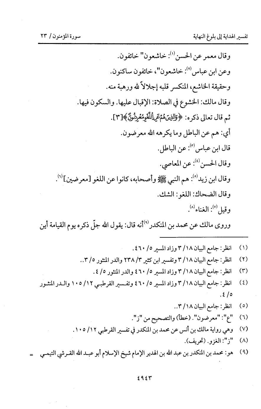 وقال ابن زيد: هم النبي A وأصحابه، كانوا عن اللغو [معرضين].