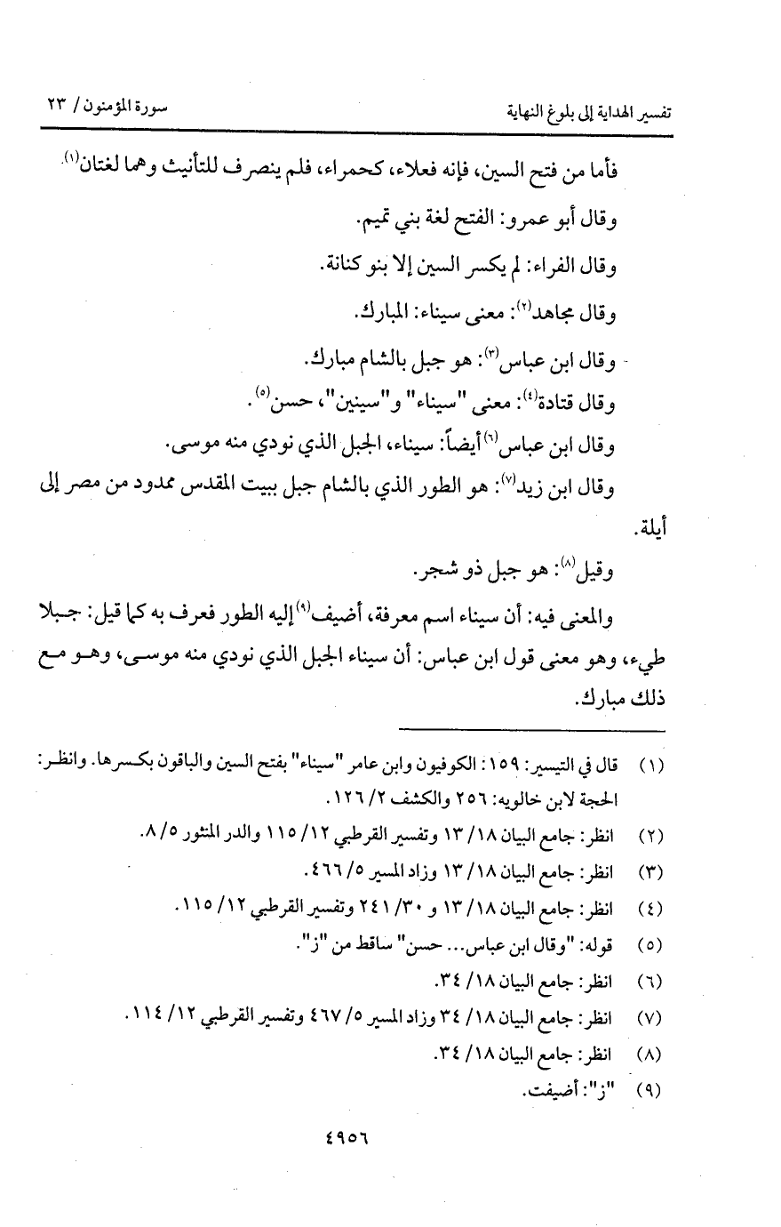 والمعنى فيه: أن سيناء اسم معرفة، أضيف إليه الطور فعرف به كما قيل: جبلا طيء، وهو معنى قول ابن عباس: أن سيناء الجبل الذي نودي منه موسى، وهو مع ذلك مبارك.