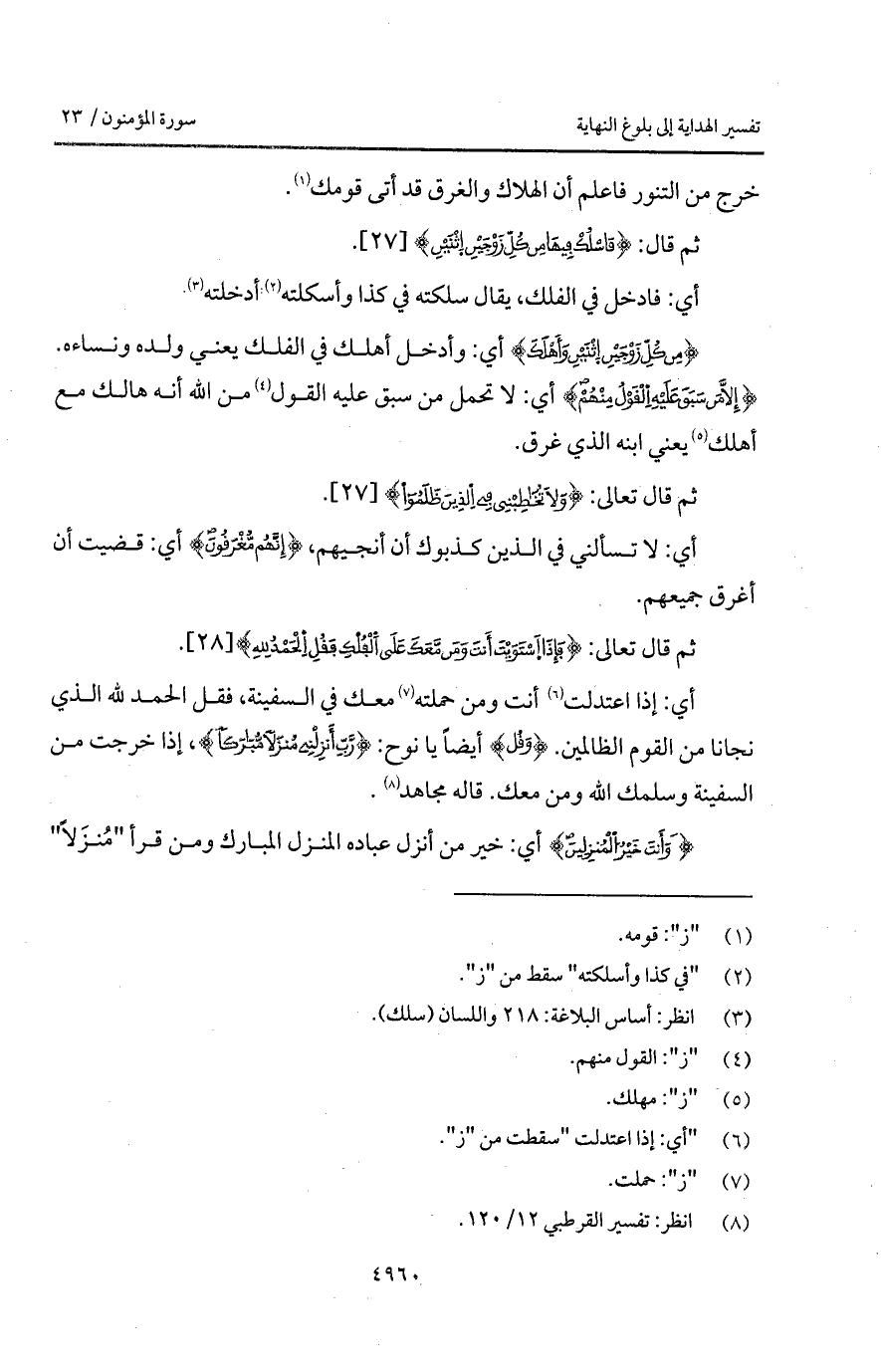 أي: إذا اعتدلت أنت ومن حملته معك في السفينة، فقل الحمد لله الذي نجانا من القوم الظالمين {وَقُل} أيضاً يا نوح: {رَّبِّ أَنزِلْنِي مُنزَلاً مُّبَارَكاً}، إذا خرجت من السفينة وسلمك الله ومن معك. قاله مجاهد.