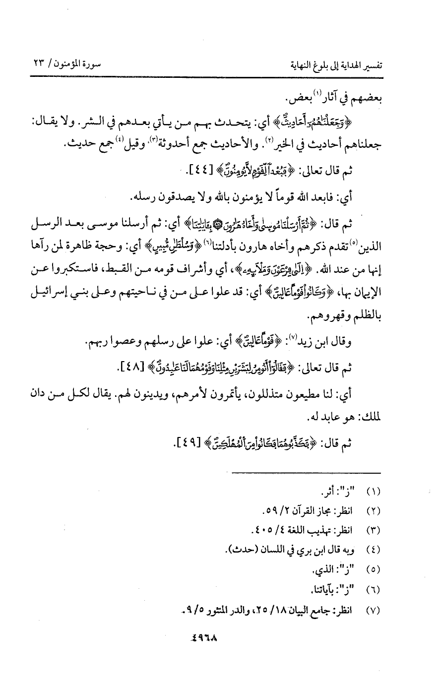 ثم قال: {ثُمَّ أَرْسَلْنَا موسى وَأَخَاهُ هَارُونَ بِآيَاتِنَا} أي: ثم أرسلنا موسى بعد الرسل الذين تقدم ذكرهم وأخاه هارون بأدلتنا {وَسُلْطَانٍ مُّبِينٍ} أي: وحجة ظاهرة لمن رآها إنها من عند الله. {إلى فِرْعَوْنَ وَمَلَئِهِ}، أي وأشراف قومه من القبط، فاستكبروا عن الإيمان بها {وَكَانُواْ قَوْماً عَالِينَ}، أي: قد علوا على من في ناحيتهم وعلى بني إسرائيل بالظلم وقهروهم.
