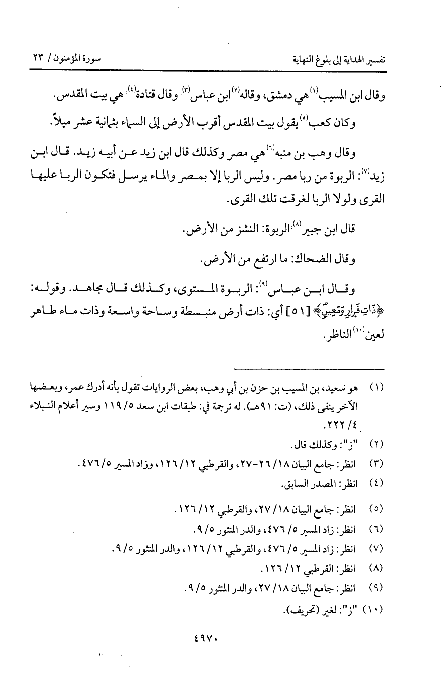 وقال وهب بن منبه هي مصر وكذلك قال ابن زيد عن أبيه زيد. قال ابن زيد: الربوة من ربا مصر. وليس الربا إلا بمصر والماء يرسل فتكون الربا عليها القرى ولولا الربا لغرقت تلك القرى.