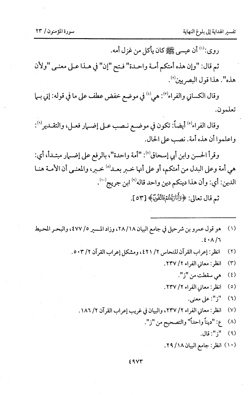 ثم قال: " وإن هذه أمتكم أمة واحدة " فتح " إن " في هذا على معنى " ولأن هذه ". هذا قول البصريين.
