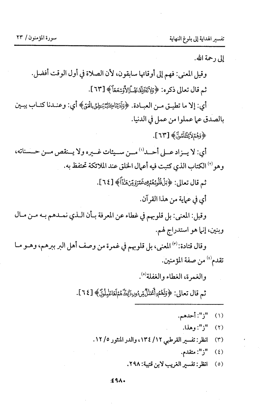 وقال قتادة: المعنى، بل قلوبهم في غمرة من وصف أهل البر ببرهم، وهو ما تقدم من صفة المؤمنين.
