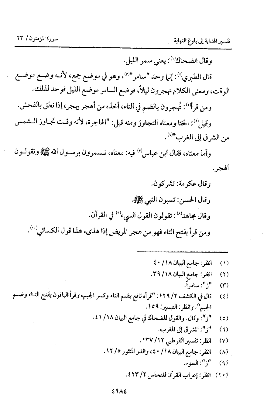 وأما معناه، فقال ابن عباس فيه: معناه، تسمرون برسول الله A وتقولون الهجر.