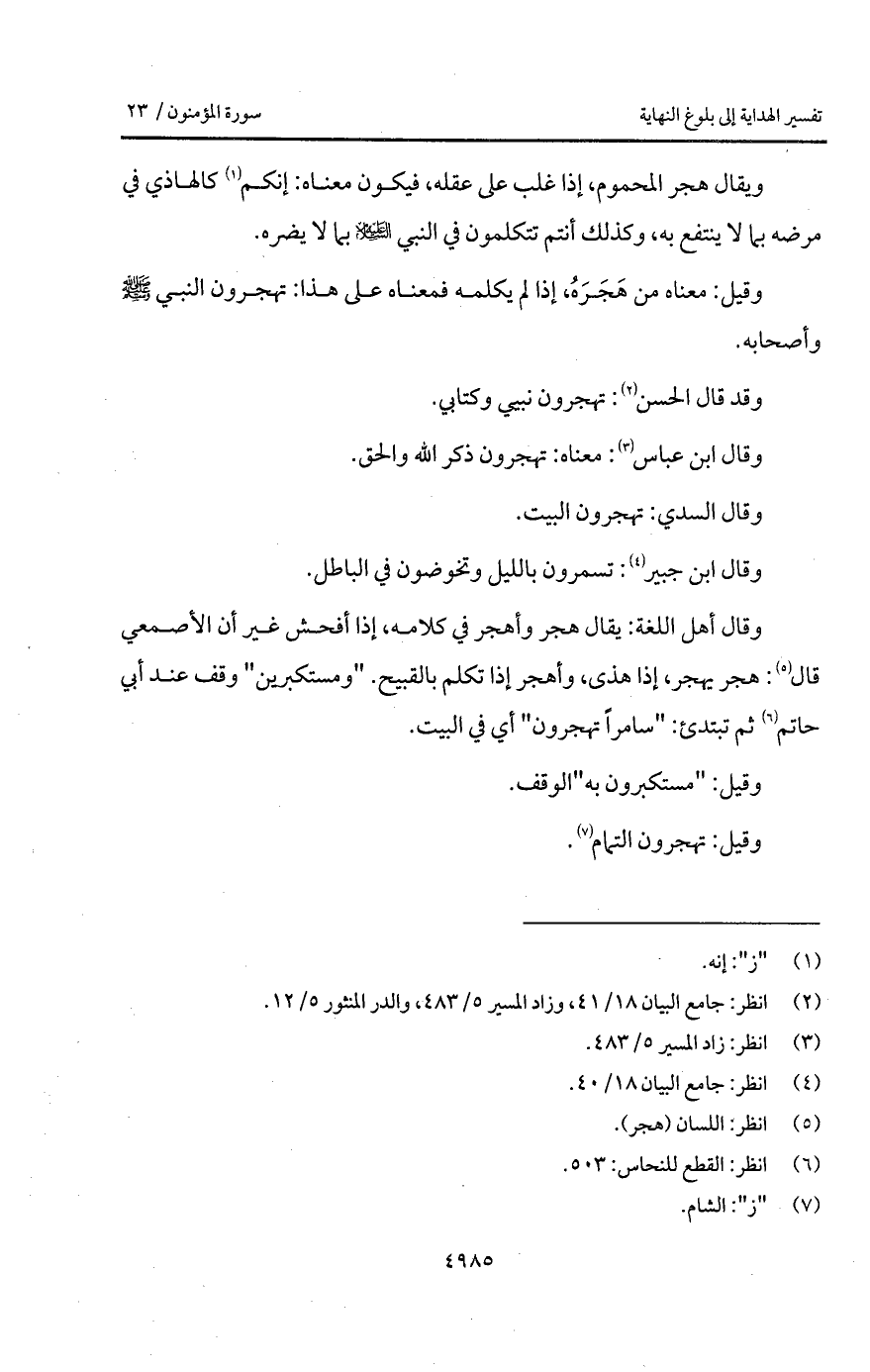 وقال أهل اللغة: يقال هجر وأهجر في كلامه، إذا أفحش غير أن الأصمعي قال: هجر يهجر، إذا هذى، وأهجر إذا تكلم بالقبيح. " ومستكبرين " وقف عند أبي حاتم ثم تبتدئ: " سامراً تهجرون " أي في البيت.