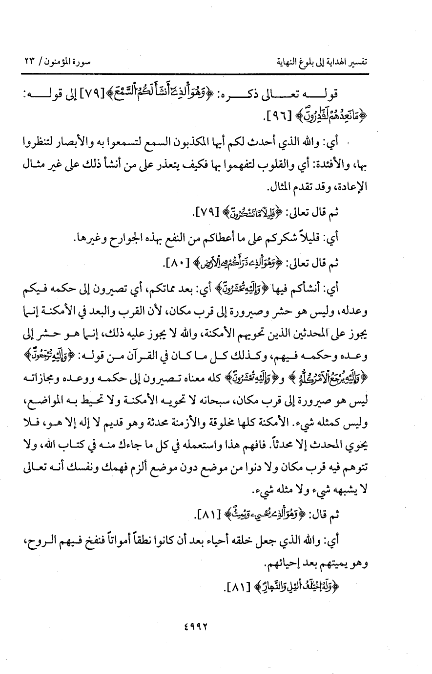 قوله تعالى ذكره: {وَهُوَ الذي أَنْشَأَ لَكُمُ السمع} إلى قوله: {مَا نَعِدُهُمْ لَقَادِرُونَ}.