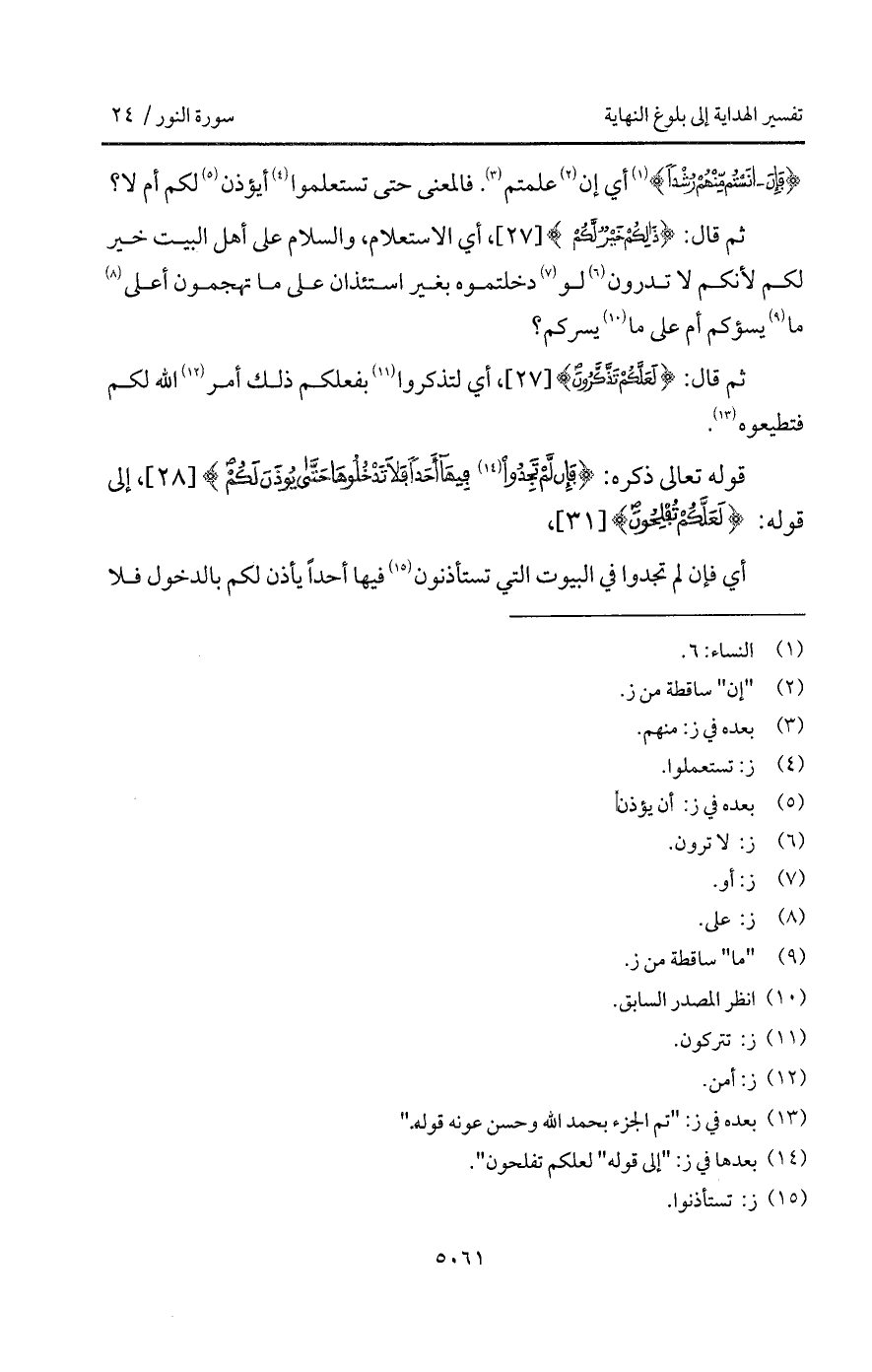 {فَإِنْ آنَسْتُمْ مِّنْهُمْ رُشْداً} [النساء: 6] أي إن علمتم. فالمعنى حتى تستعلموا أيؤذن لكم أم لا؟