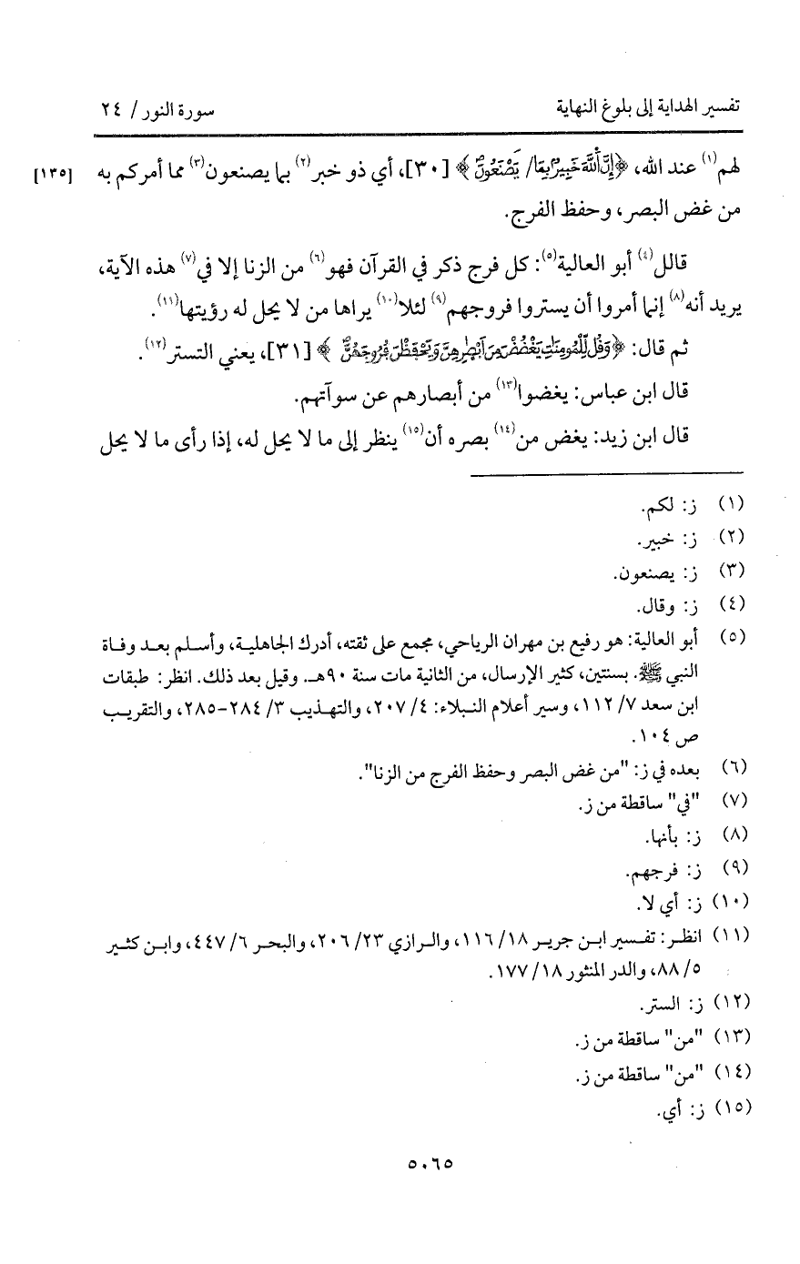 قال أبو العالية: كل فرج ذكر في القرآن فهو من الزنا إلا في هذه الآية، يريد أنه إنما أمروا أن يستروا فروجهم لئلا يراها من لا يحل له رؤيتها.