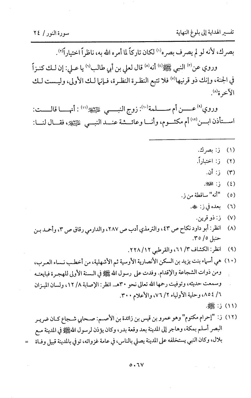 وروي عن أم سلمة: زوج النبي عليه السلام: أنها قالت: " استأذن ابن أم مكثوم، وأنا وعائشة عند النبي عليه السلام، فقال لنا: