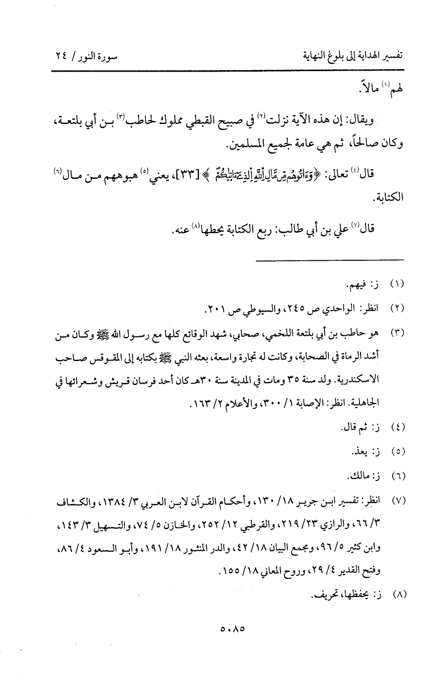 ويقال: إن هذه الآية نزلت في صبيح القبطي مملوك الحاطب بن أبي بلتعة، وكان صالحاً، ثم هي عامة لجميع المسلمين.