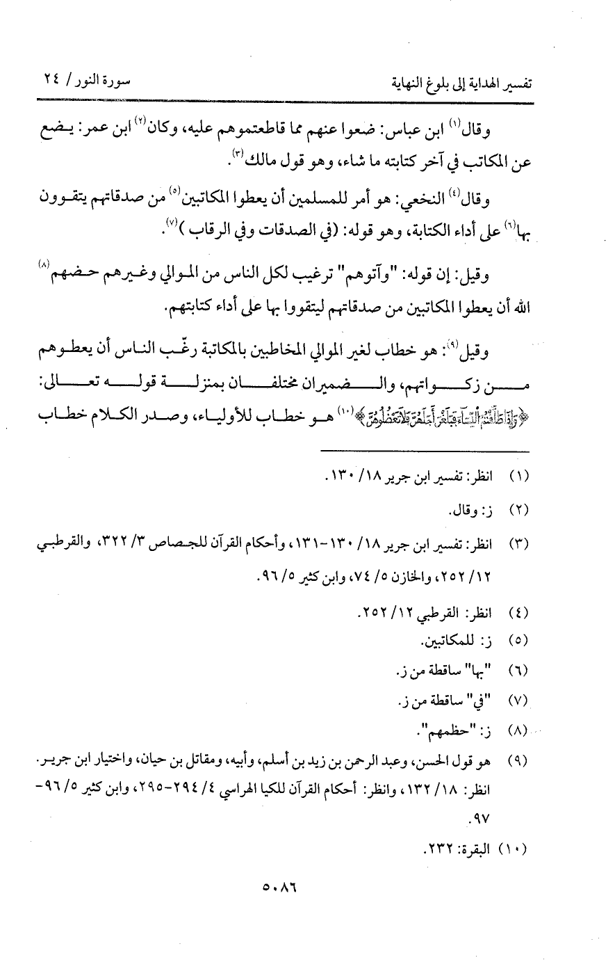 وقال النخعي: هو أمر للمسلمين أن يعطوا المكاتبين من صدقاتهم يتقوون بها على أداء الكتابة، وهو قوله: (في الصدقات وفي الرقاب).
