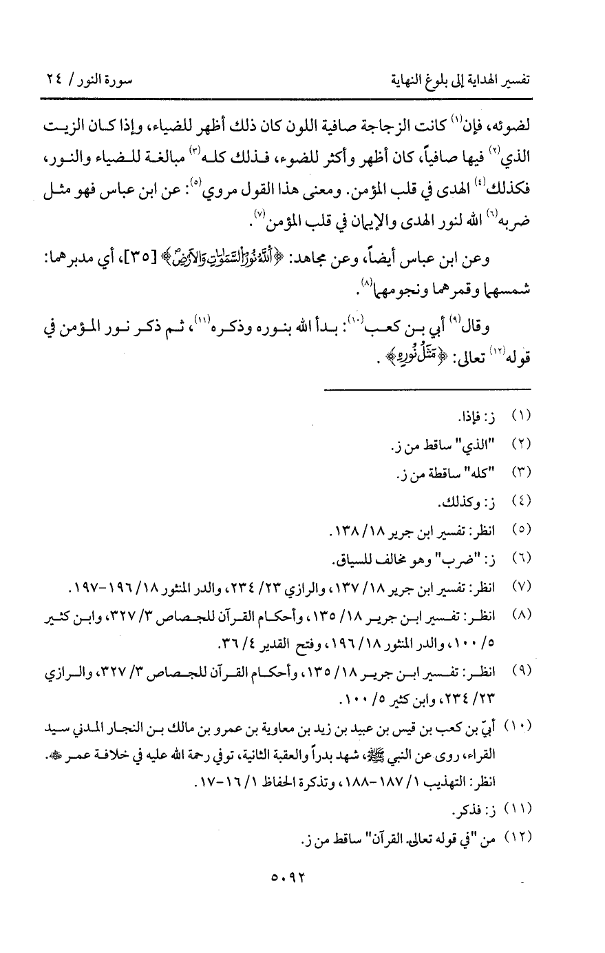 وقال أبي بن كعب: بدأ الله بنوره وذكره، ثم ذكر نور المؤمن في قوله تعالى: {مَثَلُ نُورِهِ}.