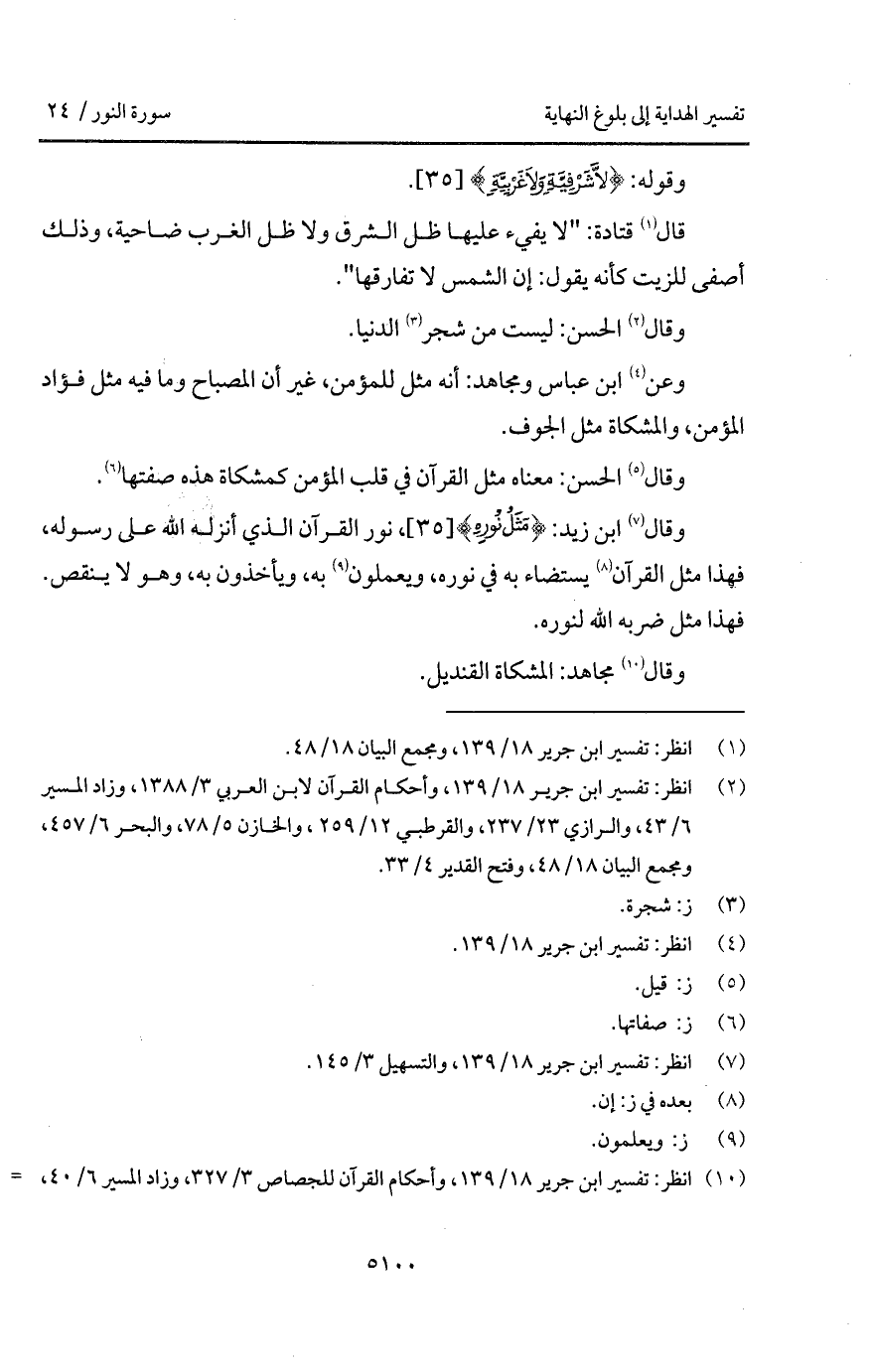 قال قتادة: " لا يفيء عليها ظل الشرق ولا ظل الغرب ضاحية، وذلك أصفى للزيت كأنه يقول: إن الشمس ى تفارقها ".