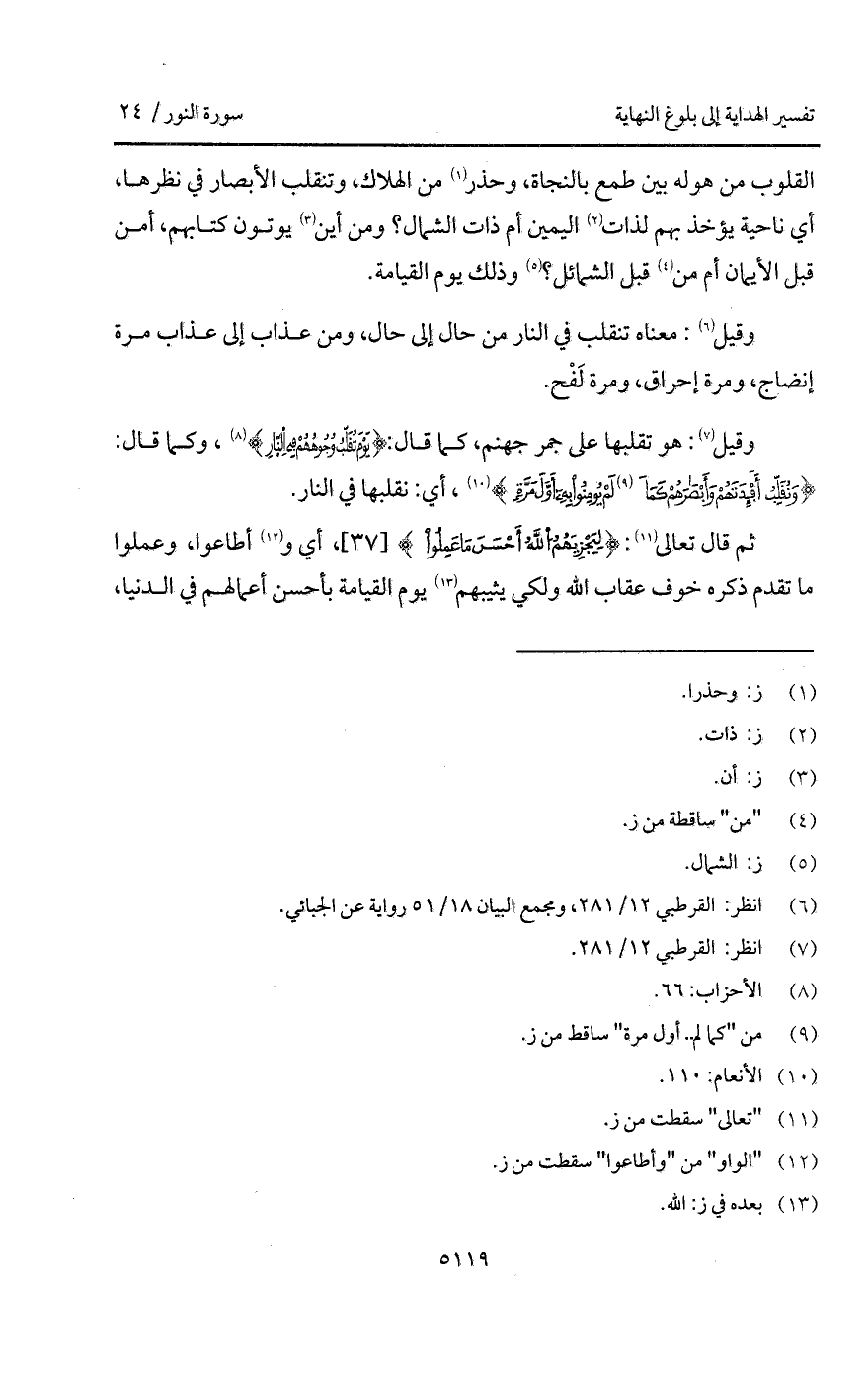 القلوب من هوله بين طمع بالنجاة، وحذر من الهلاك، وتنقلب الأبصار في نظرها، أي ناحية يؤخذ بهم لذات اليمين أم ذات الشمال؟ ومن أين يوتون كتابهم، أمن قبل الأيمان أم من قبل الشمائل؟ وذلك يوم القيامة.