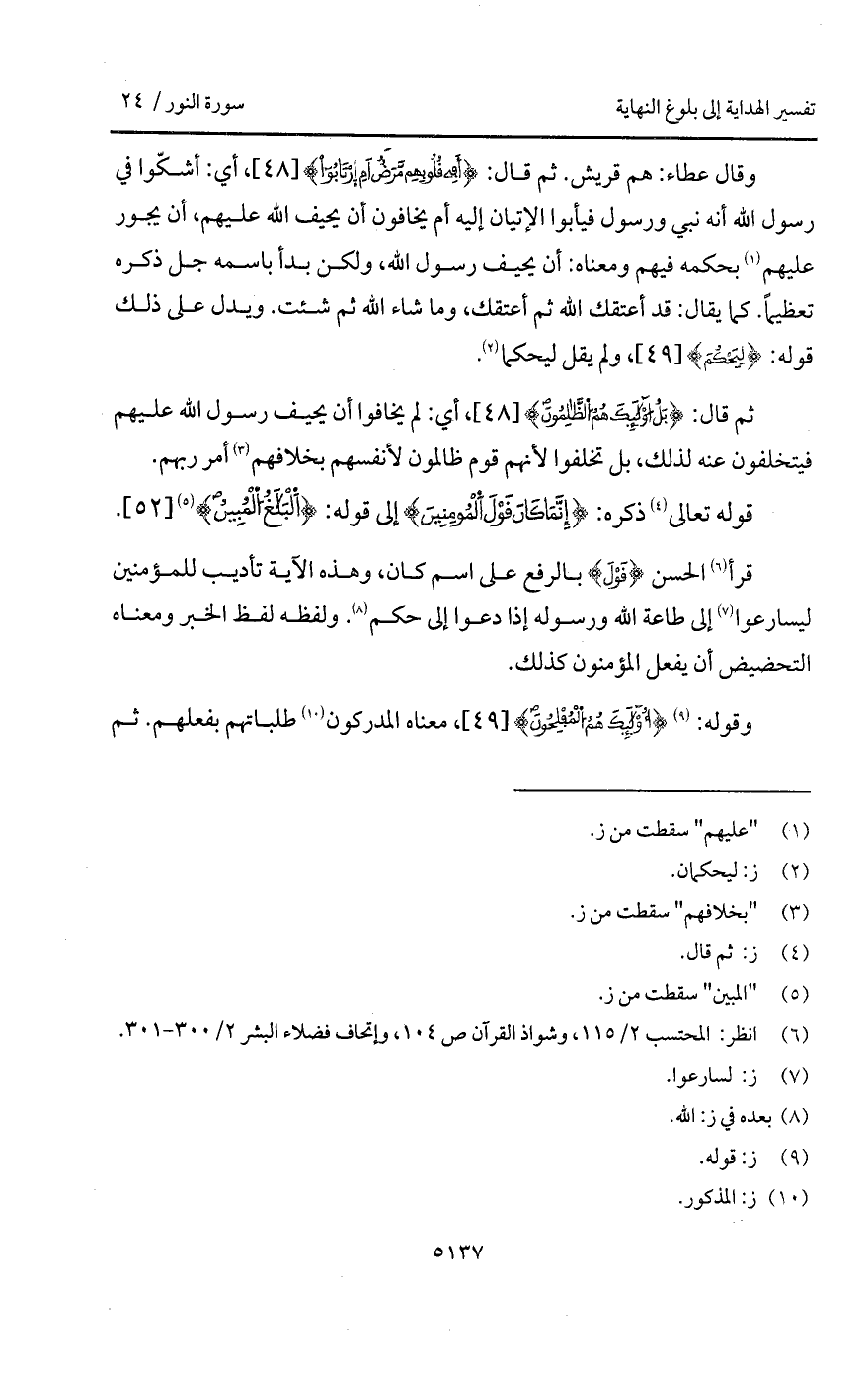 وقال عطاء: هم قريش. ثم قال: {أَفِي قُلُوبِهِمْ مَّرَضٌ أَمِ ارتابوا}، أي: أشكّوا في رسول الله أنه نبي ورسول فيأبوا الإتيان إليه أم يخافون أن يحيف الله عليهم، أن يجور عليهم بحكمه فيهم ومعناه: أن يحيف رسول الله، ولكن بدأ باسمه جل ذكره تعظيماً. كما يقال: قد أعتقك الله ثم أعتقك، وما شاء الله ثم شئت. ويدل على ذلك قوله: {لِيَحْكُمَ}، ولم يقل ليحكما.