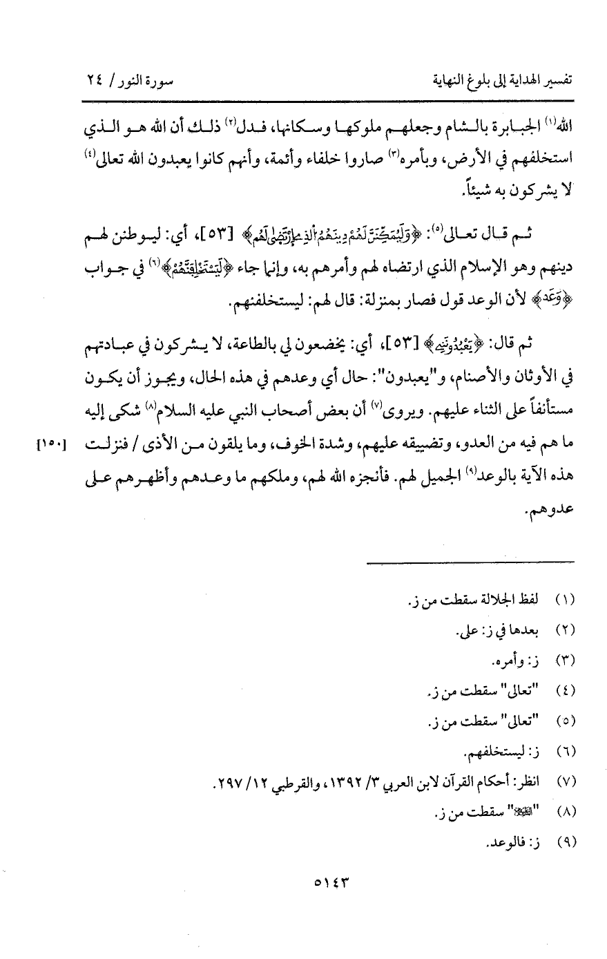 ثم قال: {يَعْبُدُونَنِي}، أي: يخضعون لي بالطاعة، لا يشركون في عبادتهم في الأوثان والأصنام، و " يعبدون ": حال أي وعدهم في هذه الحال، ويجوز أن يكون مستأنفاً على الثناء عليهم. ويروى أن بعض أصحاب النبي عليه السلام شكى إليه ما هم فيه من العدو، وتضييقه عليهم، وشدة الخوف، وما يلقون من الأذى / فنزلت هذه الآية بالوعد الجميل لهم. فأنجزه الله لهم، وملكهم ما وعدهم وأظهرهم على عدوهم.