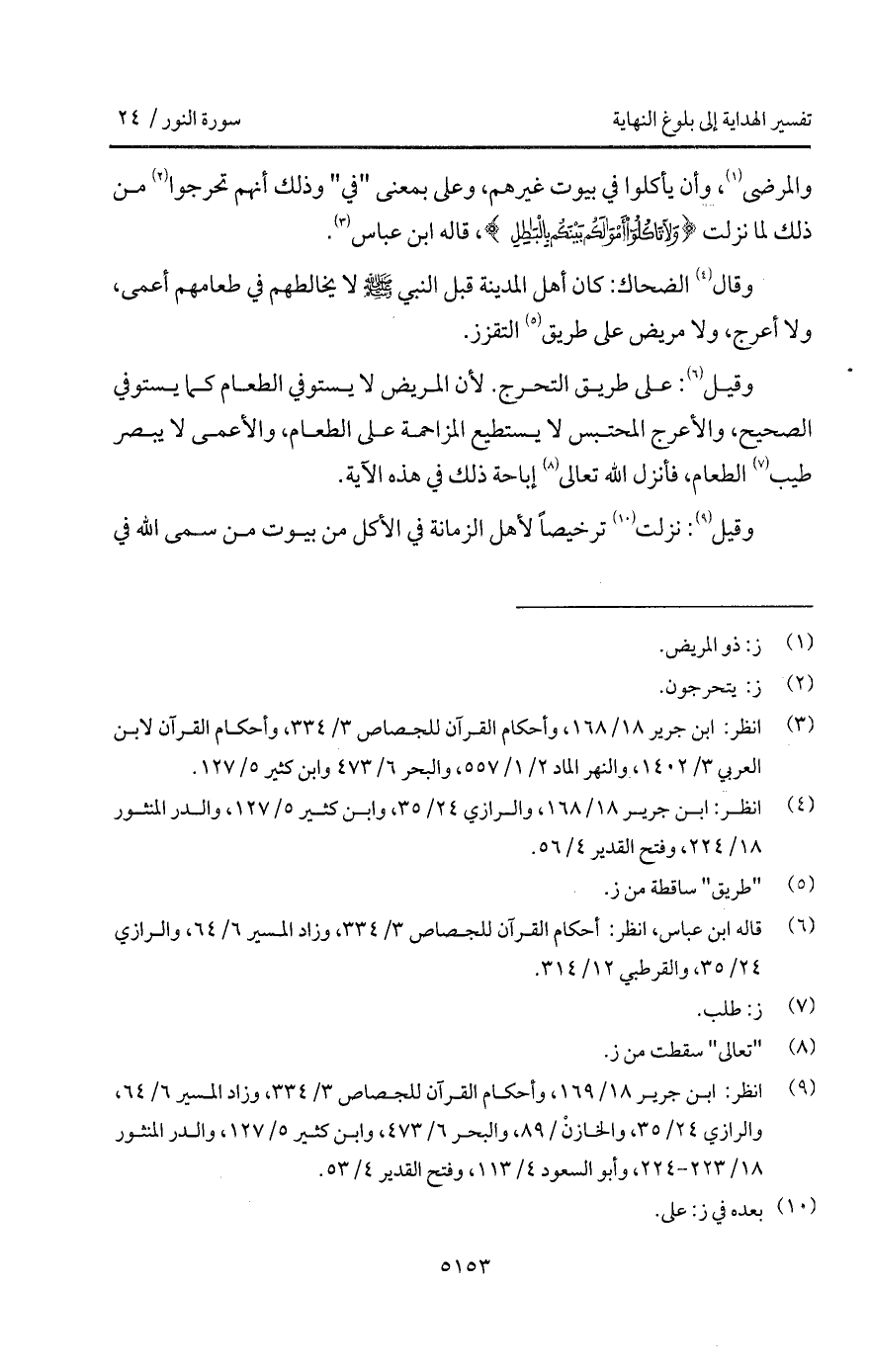 وقال الضحاك: كان أهل المدينة قبل النبي A لا يخالطهم في طعامهم أعمى، ولا أعرج، ولا مريض على طريق التقزز.