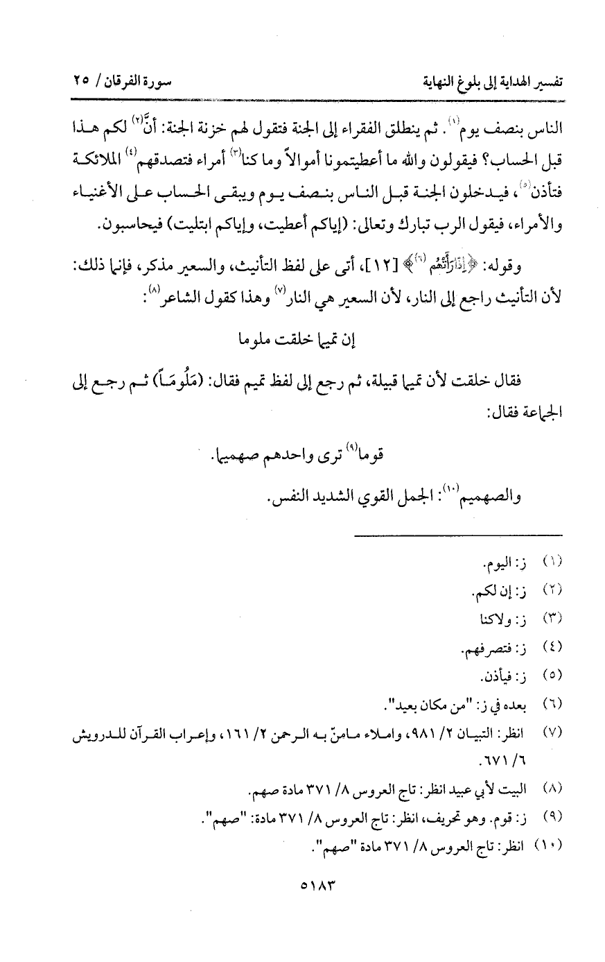 وقوله: {إِذَا رَأَتْهُمْ}، أتى على لفظ التأنيث، والسعير مذكر، فإنما ذلك: لأن التأنيث راجع إلى النار، لأن السعير هي النار وهذا كقول الشاعر: