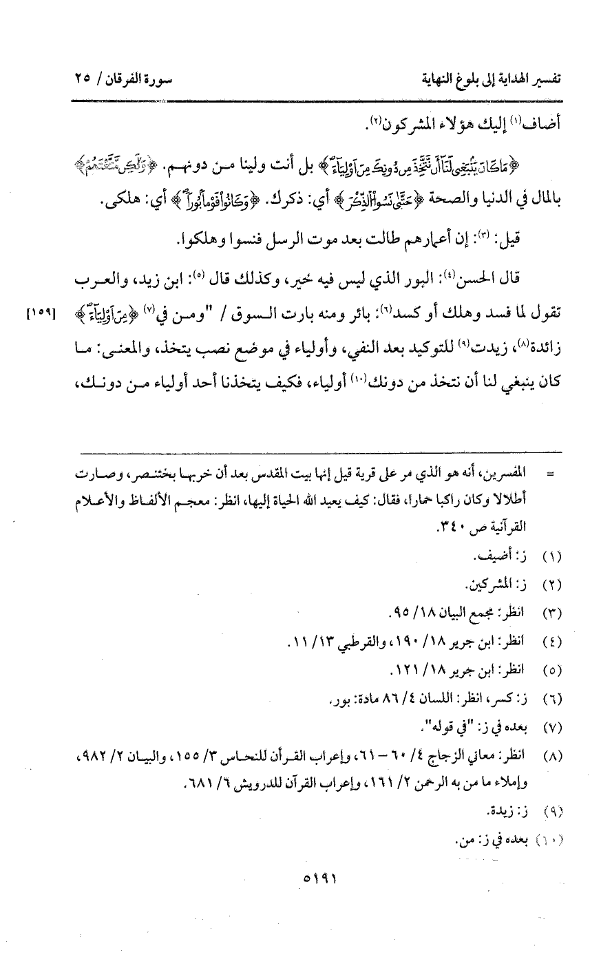 قال الحسن: البور الذي ليس فيه خير، وكذلك قال: ابن زيد، والعرب تقول لما فسد وهلك أو كسد: بائر ومنه بارت السوق / " ومن في {مِنْ أَوْلِيَآءَ} زائدة، زيدت للتوكيد بعد النفي، وأولياء في موضع نصب يتخذه، والمعنى: ما كان ينبغي لنا نتخذ من دونك أولياء، فكيف يتخذها أحد أولياء من دونك،