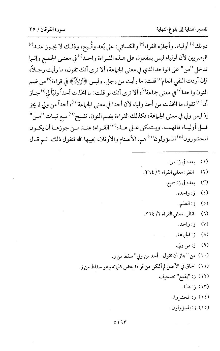 دونك أولياء. وأجازه الفراء والكسائي: على بُعد وقُبح، وذلك لا يجوز عند البصريين لأن أولياء ليس بمفعول على هذه القراءة واحد في معنى الجمع وإنما تدخل " من " على الواحد الذي في معنى الجماعة، ألا ترى أنك تقول، ما رأيت رجلاً، فإن أردت النفي العام قلت: ما رأيت من رجل، وليس {أَوْلِيَآءَ} في قراءة من ضم النون واحدا في معنى جماعة، ألا ترى أنك لو قلت: ما اتخذت أحداً وليّاً لي جاز أن تقول ما اتخذت من أحد وليا، لأن أحدا في معنى الجماعة، أحداً من ولي لم يجز إذ ليس ولي في معنى الجماعة، فكذلك القراءة بضم النون، تقبح مع ثبات " من " قبل أولياء فافهمه.