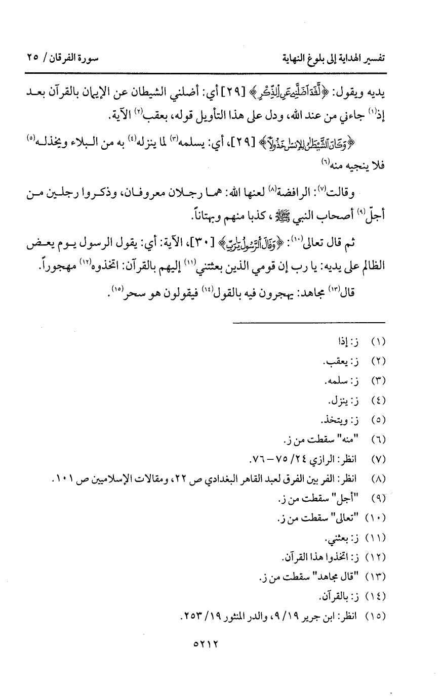 قال تعالى: {وَقَالَ الرسول يارب}، الآية: أي: يقول الرسول يوم يعض الظالم على يديه: يا رب إن قومي الذين بعثتني إليهم بالقرآن: اتخذوه مهجوراً.