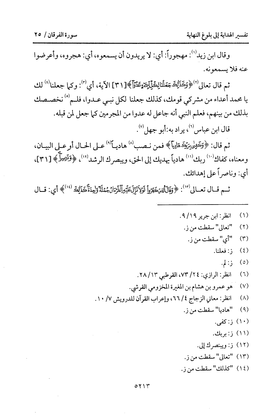 قال تعالى {وَكَذَلِكَ جَعَلْنَا لِكُلِّ نَبِيٍّ عَدُوّاً} الآية، أي: وكما جعلنا لك يا محمد أعداء من مشركي قومك، كذلك جعلنا لكل نبي عدوا، فلم نخصصك بذلك من بينهم، فعلم النبي أنه جاعل له عدوا من المجرمين كما جعل لمن قبله.