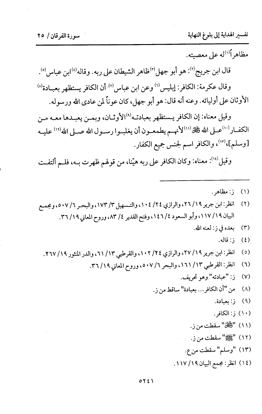 وقيل معناه: إن الكافر يستظهر بعبادته الأوثان، وبمن يعبدها معه من الكفار على الله D لأنهم يطمعون أن يغلبوا رسول الله صلى الله عليه [وسلم]، والكافر اسم لجنس جميع الكفار.