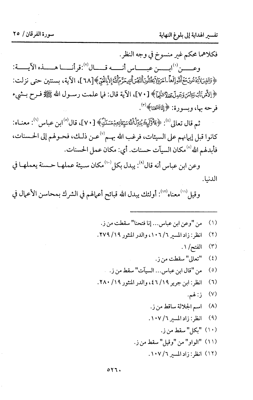 وعن ابن عباس أنه قال: قرأنا هذه الآية: {والذين لاَ يَدْعُونَ مَعَ الله إلها آخَرَ وَلاَ يَقْتُلُونَ النفس التي حَرَّمَ الله إِلاَّ بالحق}، الآية، بسنتين حتى نزلت: {إِلاَّ مَن تَابَ وَآمَنَ وَعَمِلَ عَمَلاً صَالِحاً}، الآية قال: فما علمت رسول الله A فرح بشيء فرحه بها، وبسورة: {إِنَّا فَتَحْنَا} [الفتح: 1].