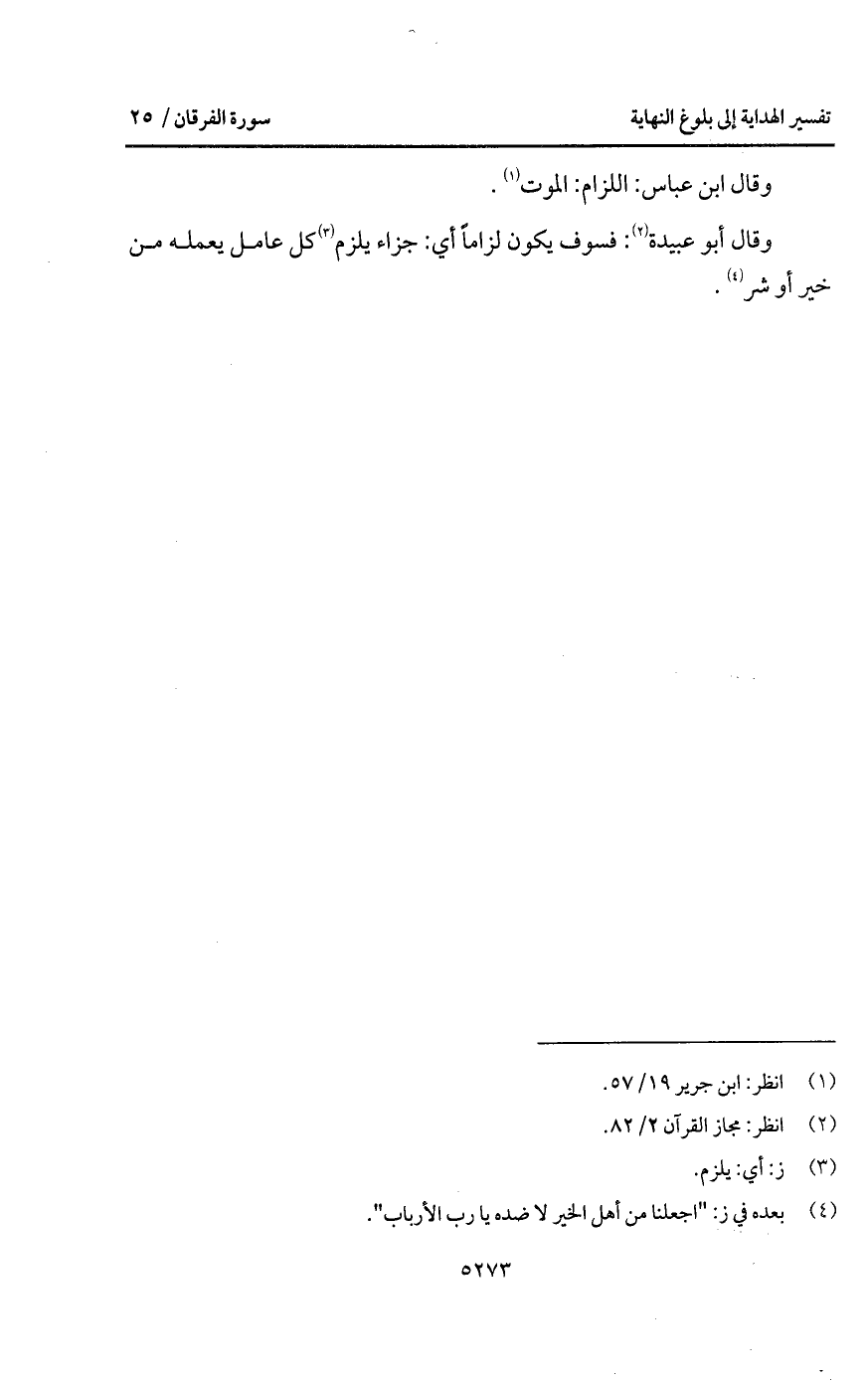 وقال أبو عبيدة: فسوف يكون لزاماً أي: جزاء يلزم كل عامل يعمله من خير أو شر.