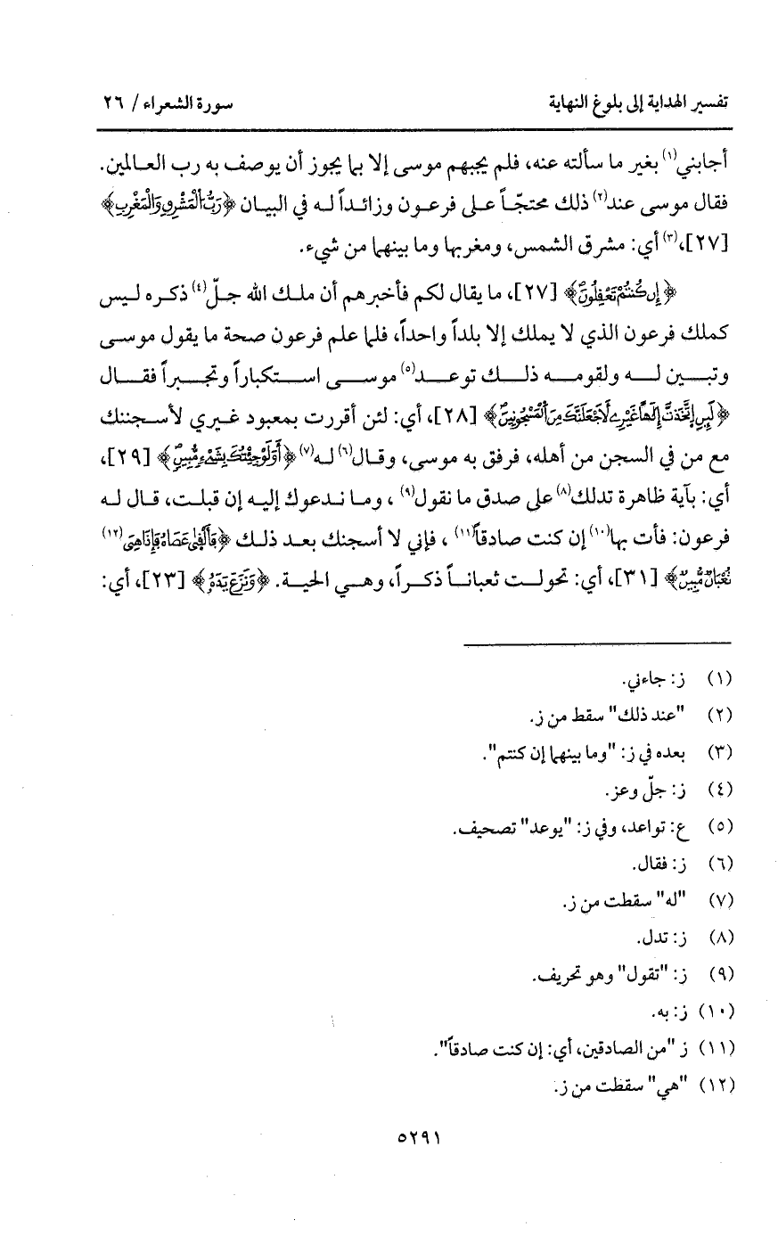 {إِن كُنتُمْ تَعْقِلُونَ}، ما يقال لكم فأخبرهم أن ملك الله جلّ ذكره ليس كملك فرعون الذي لا يملك إلا بلداً واحداً، فلما علم فرعون صحة ما يقول موسى وتبين له ولقومه ذلك توعد موسى استكباراً وتجبراً فقال {لَئِنِ اتخذت إلها غَيْرِي لأَجْعَلَنَّكَ مِنَ المسجونين}، أي: لئن أقررت بمعبود غيري لأسجننك مع من في السجن من أهله، فرفق به موسى، وقال له {أَوَلَوْ جِئْتُكَ بِشَيءٍ مُّبِينٍ}، أي: بآية ظاهرة تدلك على صدق ما نقول، وما ندعوك إليه إن قبلت، قال له فرعون: فأت بها إن كنت صادقاً، فإني لا أسجنك بعد ذلك {فألقى عَصَاهُ فَإِذَا هِيَ ثُعْبَانٌ مُّبِينٌ}، أي: تحولت ثعباناً ذكراً، وهي الحية. {وَنَزَعَ يَدَهُ}، أي: