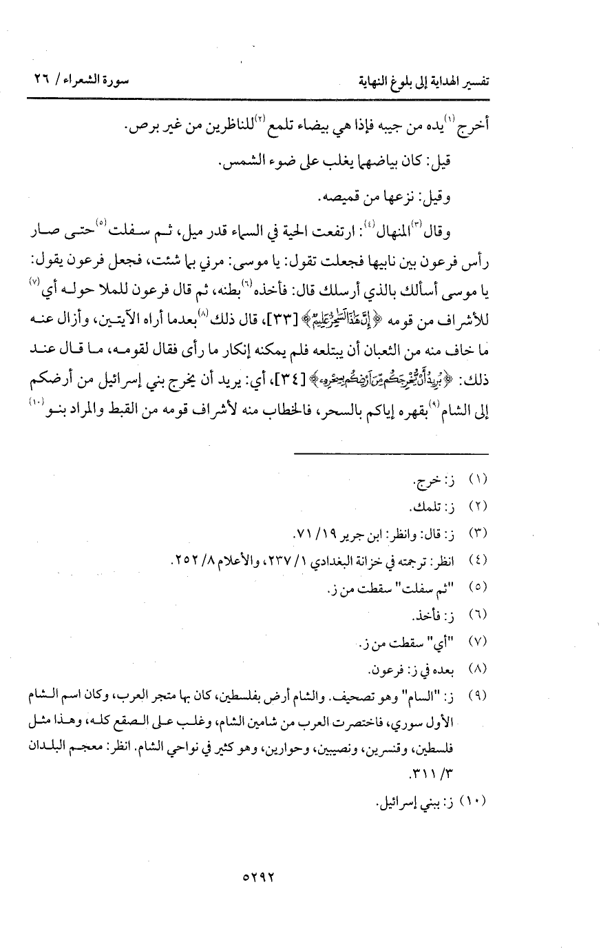 وقال المنهال: ارتفعت الحية في السماء قدر ميل، ثم سفلت حتى صار رأس فرعون بين نابيها فجعلت تقول: يا موسى: مرني بما شئت، فجعل فرعون يقول: يا موسى أسألك بالذي أرسلك قال: فأخذه بطنه، ثم قال فرعون للملا حوله أي للأشراف من قومه {إِنَّ هذا لَسَاحِرٌ عَلِيمٌ}، قال ذلك بعدما أراه الآيتين، وأزال عنه ما خاف منه من الثعبان أن يبتلعه فلم بمكنه إنكار ما رأى فقال لقومه، ما قال عند ذلك: {يُرِيدُ أَن يُخْرِجَكُمْ مِّنْ أَرْضِكُمْ بِسِحْرِهِ}، أي: يريد أن يخرج بني إسرائيل من أرضكم إلى الشام بقهره إياكم بالسحر، فالخطاب منه لأشراف قومه من القبط والمراد بنو