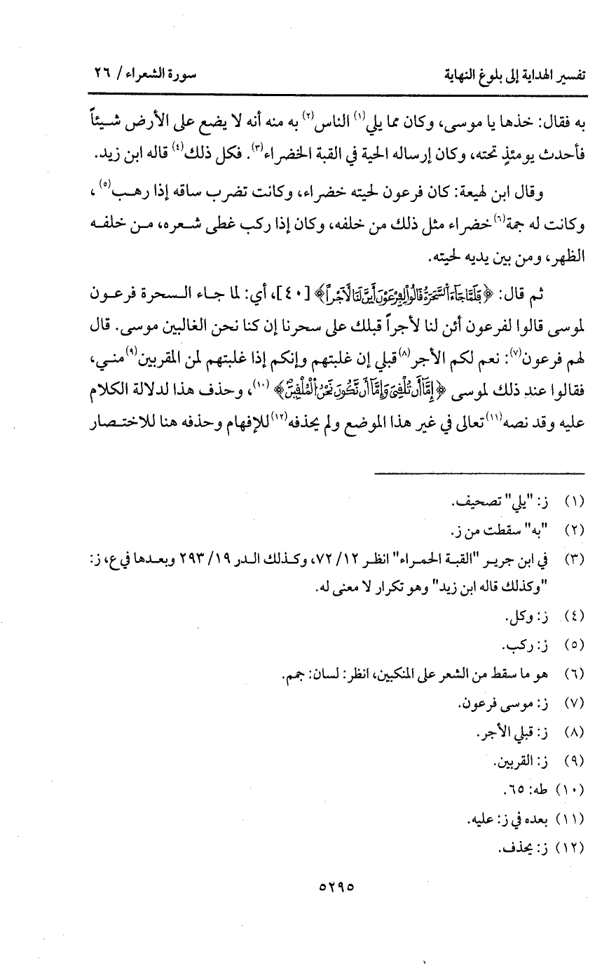 به فقال: خذها يا موسى، وكان مما يلي الناس به منه أنه لا يضع على الأرض شيئاً فأحدث يومئذٍ تحته، وكان إرساله الحية في القبة الخضراء. فكل ذلك قاله ابن زيد.