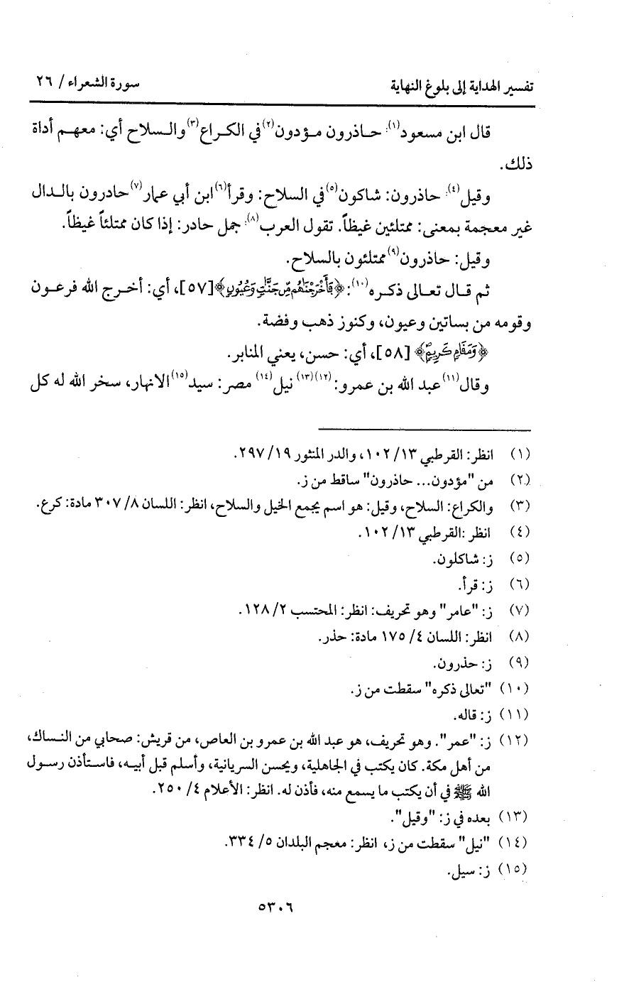 قال ابن مسعود حاذرون مؤدون في الكراع والسلاح أي: معهم أداة ذلك.