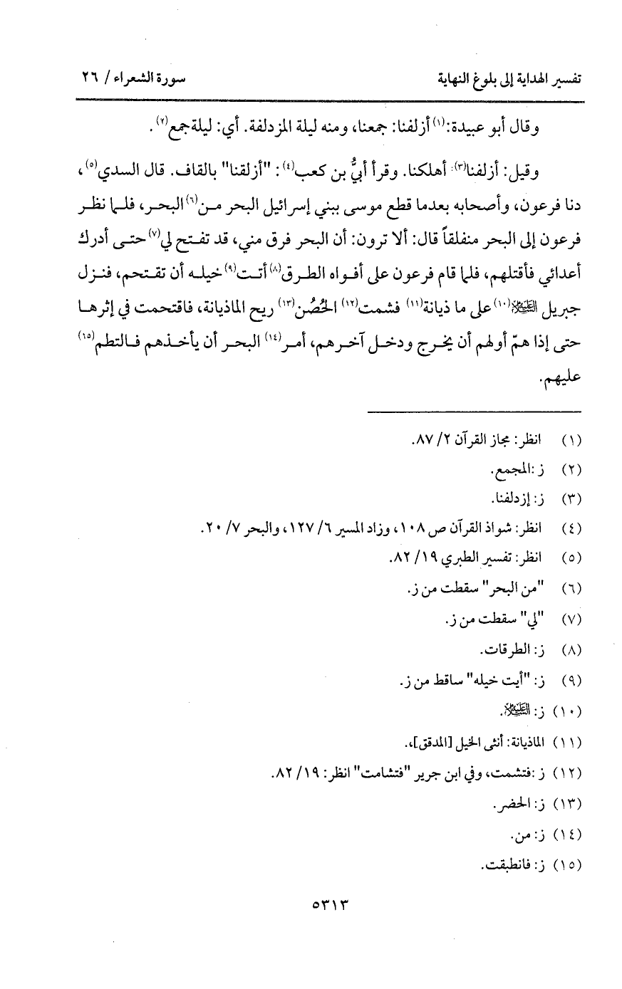 وقيل: أزلفنا أهلكنا: وقرأ أبيُّ بن كعب: " أزلقنا " بالقاف. قال السدي، دنا فرعون وأصحابه بعدما قطع موسى ببني إسرائيل البحر من البحر، فلما نظر فرعون إلى البحر منفلقاً قال: ألآ ترون: أن البحر فرق مني، قد تفتح لي حتى أدرك أعدائي فأقتلهم، فلما قام فرعون على أفواه الطرق أتت خيله أن تقتحم، فنزل جبريل عليه السلام على ما ذيانة فشمت الحُصُ، ريح الماذية، فاقتحمت في إثرها حتى إذا همّ أولهم أن يخرج ودخل آخرهم، أمر البحر أن يأخذهم فالتطم عليهم.
