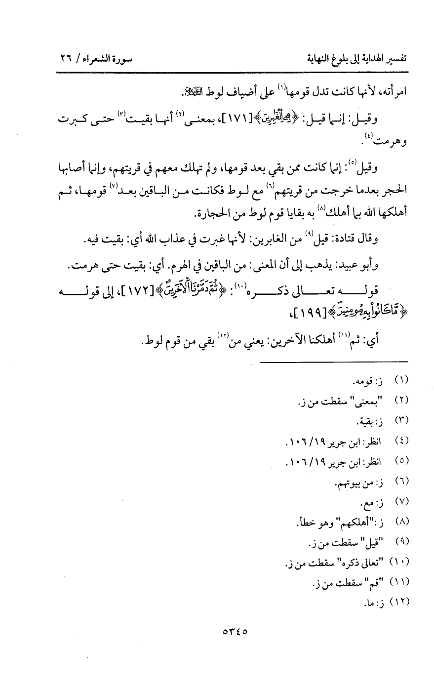 وقيل: إنما كانت ممن بقي بعد قومها، ولم تهلك معهم في قريتهم، وإنما أصابها الحجر بعدما خرجت من قريتهم مع لوط فكانت من الباقين بعد قومها، ثم أهلكها الله بما أهلك به بقايا قوم لوط من الحجارة.