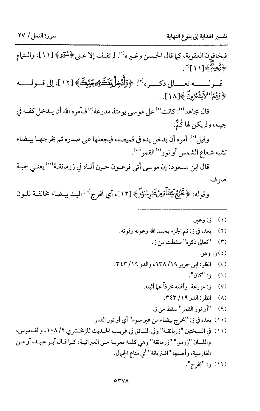 قال ابن مسعود: إن موسى أتى فرعون حين أتاه في زرمانقة يعني جبة صوف.