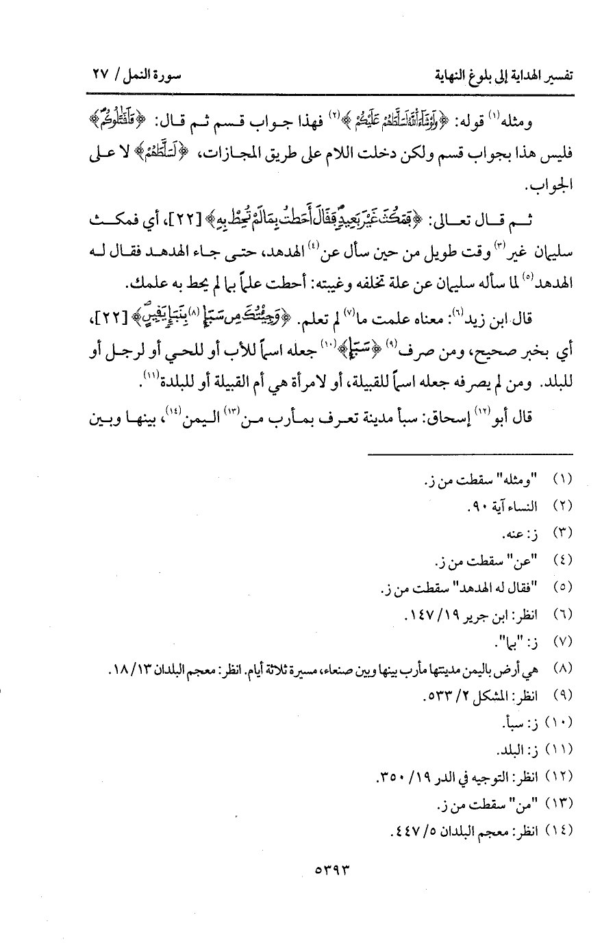 قال ابن زيد: معناه علمت ما لم تعلم. {وَجِئْتُكَ مِن سَبَإٍ بِنَبَإٍ يَقِينٍ}، أي بخبر صحيح، ومن صرف {سَبَإٍ} جعله اسماً للأب أو للحي أو لرجل أللبلد. ومن لم يصرفه جعله اسماً للقبيلة، أو لامرأة هي أم القبيلة أو للبلدة.