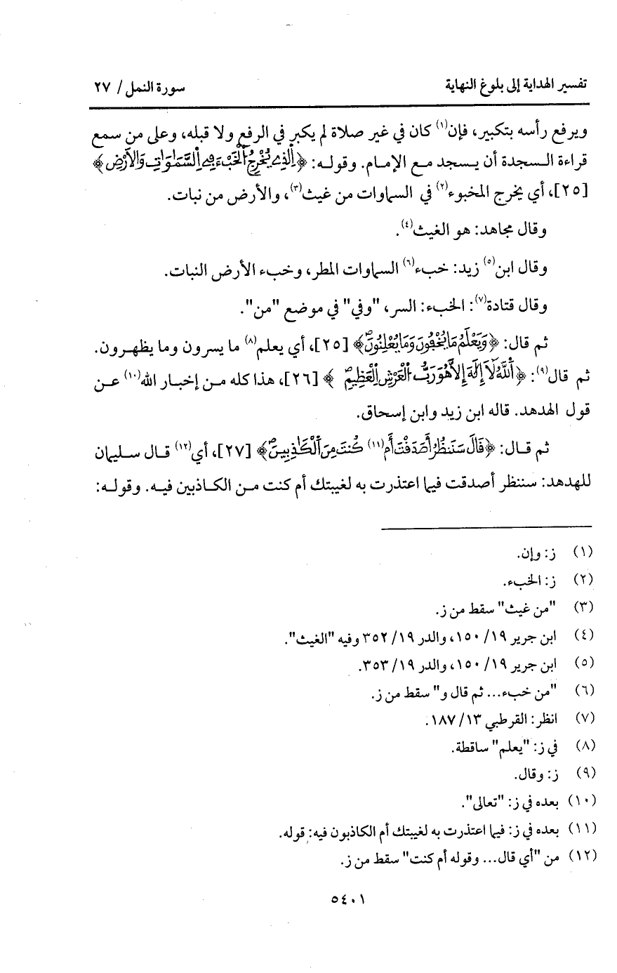 ويرفع رأسه بتكبير، فإن كان في غير صلاة لم يكبر في الرفع ولا قبله، وعلى من سمع قراءة السجدة أن يسجد مع الإمام. وقوله: {الذي يُخْرِجُ الخبء فِي السماوات والأرض}، أي يخرج المخبوء في السماوات من غيث، والأرض من نبات.
