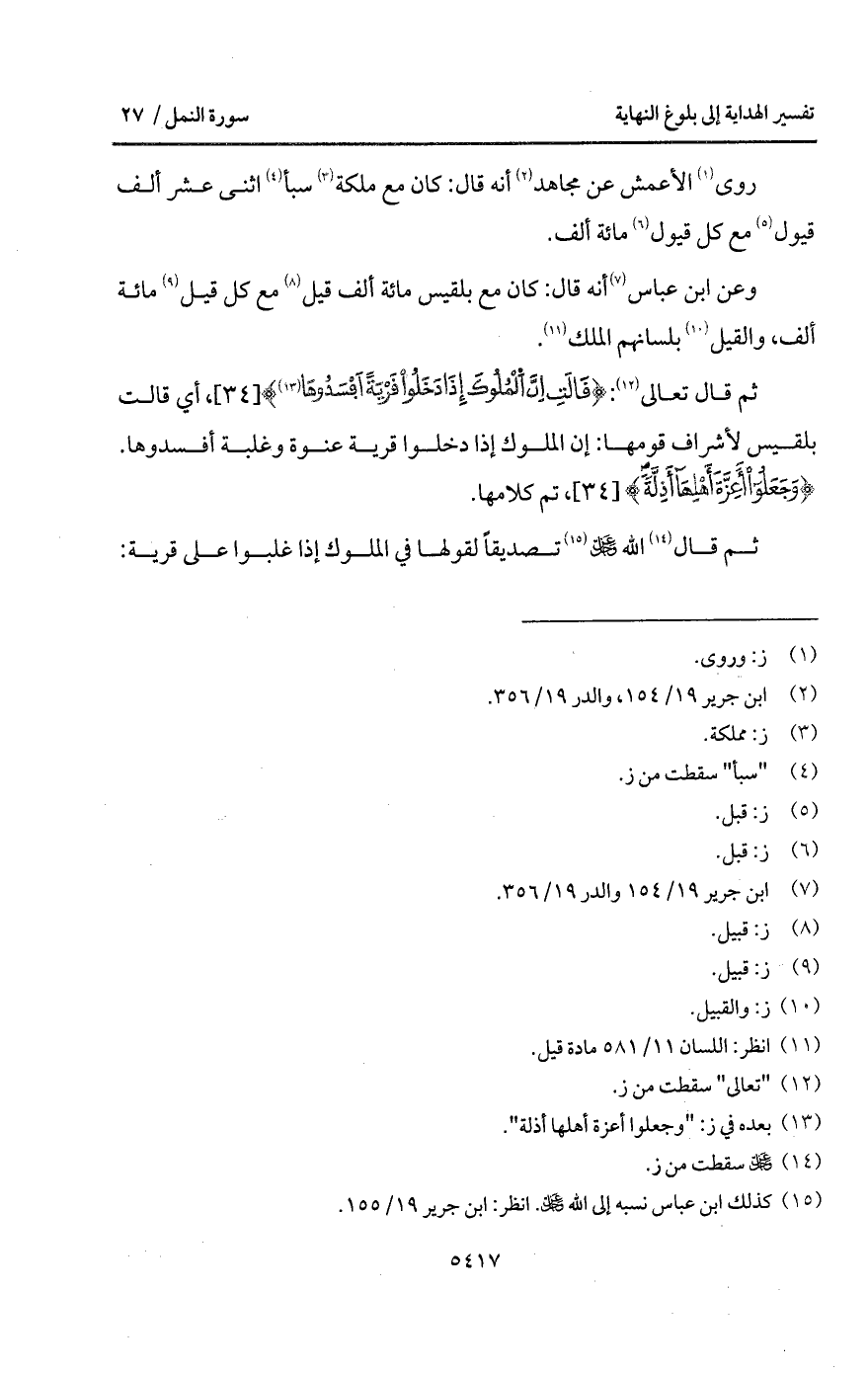 روى الأعمش عن مجاهد أنه قال: كان مع ملكة سبأ اثنى عشر ألف قيول مع كل قيول مائة ألف.