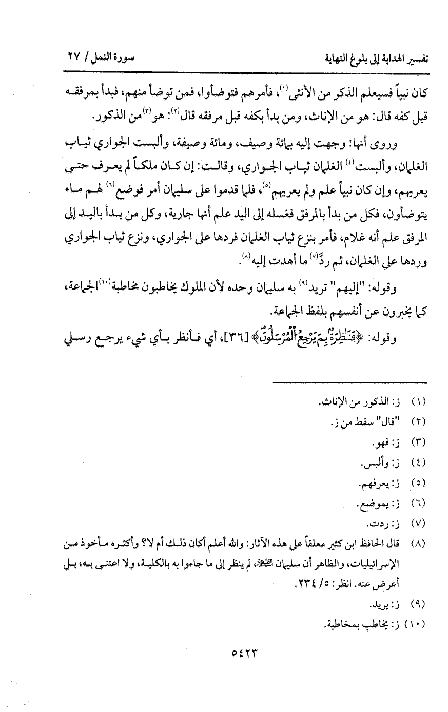 وقوله: " إليهم " تريد به سليمان وحده لأن الملوك يخاطبون مخاطبة الجماعة، كما يخبرون عن أنفسهم بلفظ الجماعة.