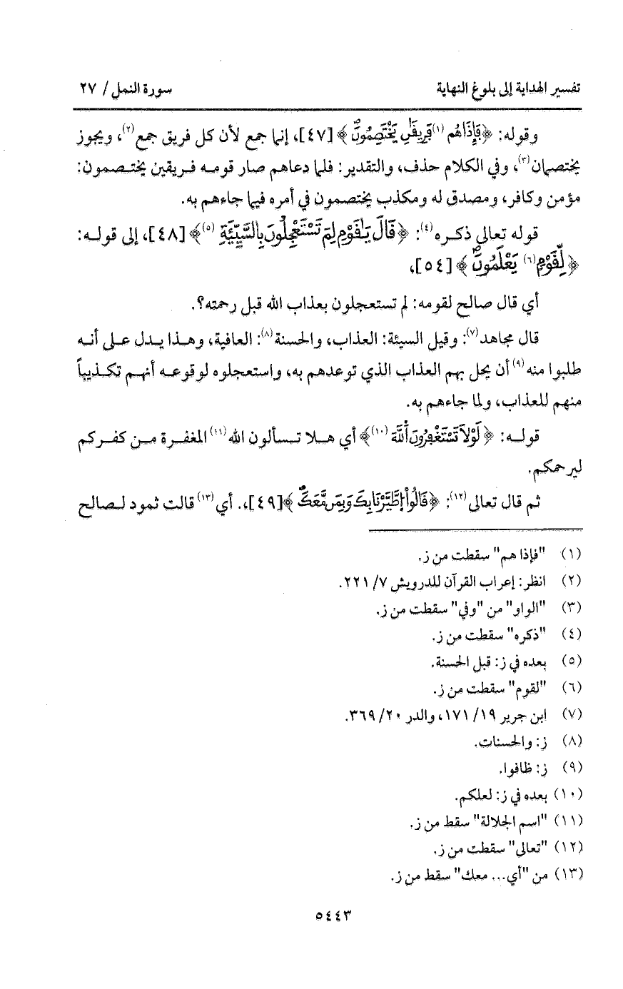 قوله تعالى ذكره: {قَالَ ياقوم لِمَ تَسْتَعْجِلُونَ بالسيئة}،
