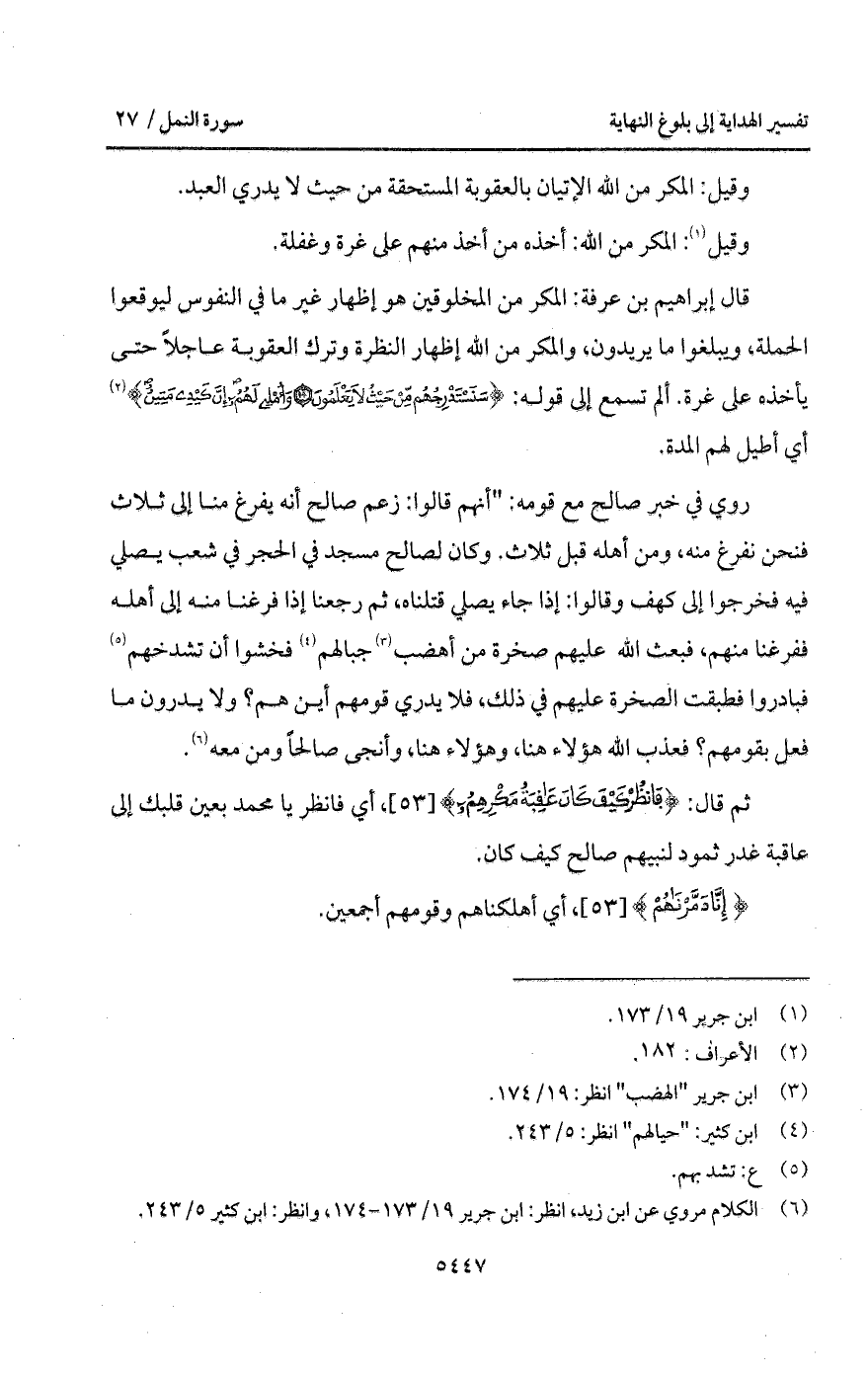 قال إبراهيم بن عرفة: المكر من المخلوقين هو إظهار غير ما في النفوس ليوقعوا الحملة، ويبلغوا ما يريدون، والمكر من الله إظهار النظرة وترك العقوبة عاجلاً حتى يأخذه على غرة. ألم تسمع إلى قوله: {سَنَسْتَدْرِجُهُمْ مِّنْ حَيْثُ لاَ يَعْلَمُونَ * وَأُمْلِي لَهُمْ إِنَّ كَيْدِي مَتِينٌ} [الأعراف: 182] أي أطيل لهم المدة.