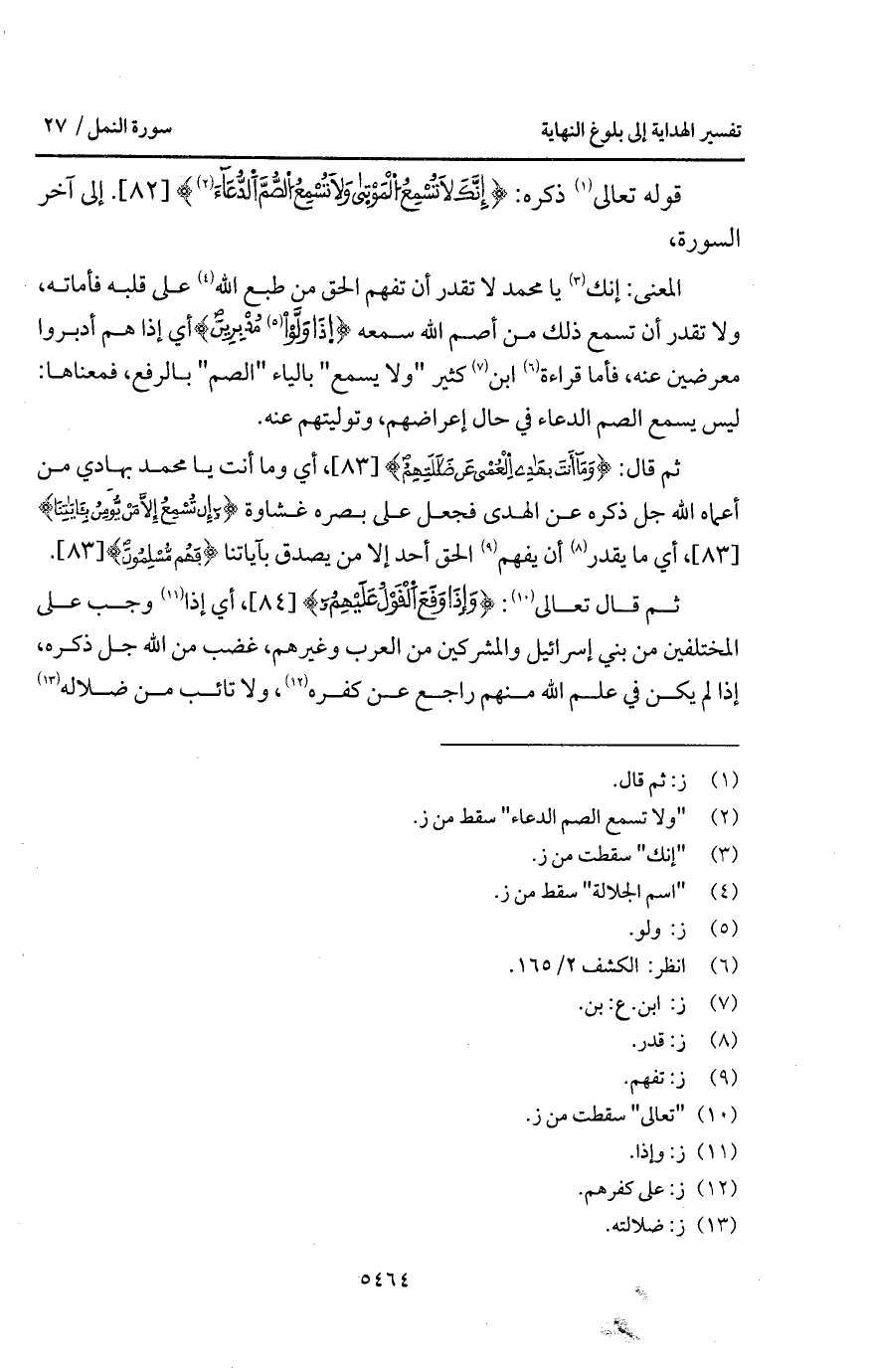 قوله تعالى ذكره: {إِنَّكَ لاَ تُسْمِعُ الموتى وَلاَ تُسْمِعُ الصم الدعآء}.