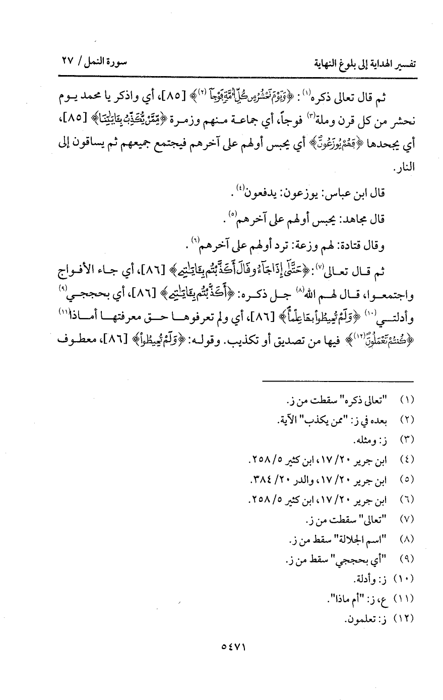 قال تعالى ذكره: {وَيَوْمَ نَحْشُرُ مِن كُلِّ أُمَّةٍ فَوْجاً}، أي واذكر يا محمد يوم نحشر من كل قرن وملة فوجاً، أي جماعة منهم وزمرة {مِّمَّن يُكَذِّبُ بِآيَاتِنَا}، أي يجحدها {فَهُمْ يُوزَعُونَ} أي يحبس أولهم على آخرهم فيجتمع جميعهم ثم يسافرون إلى النار.