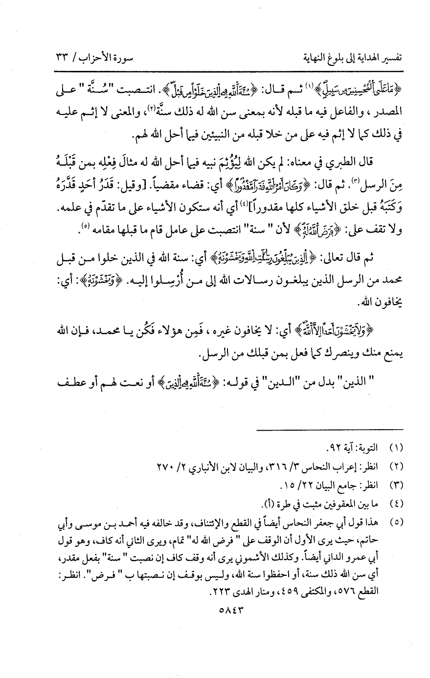 {مَا عَلَى المحسنين مِن سَبِيلٍ} [التوبة: 91] ثم قال: {سُنَّةَ الله فِي الذين خَلَوْاْ مِن قَبْلُ}. انتصبت " سُنَّة " على المصدر، والفاعل فيه ما قبله لأنه بمعنى سن الله له ذلك سنَّة، والمعنى لا إثم عليه في ذلك كما لا إثم فيه على من خلا قبله من النبيين فيما أحل الله لهم.