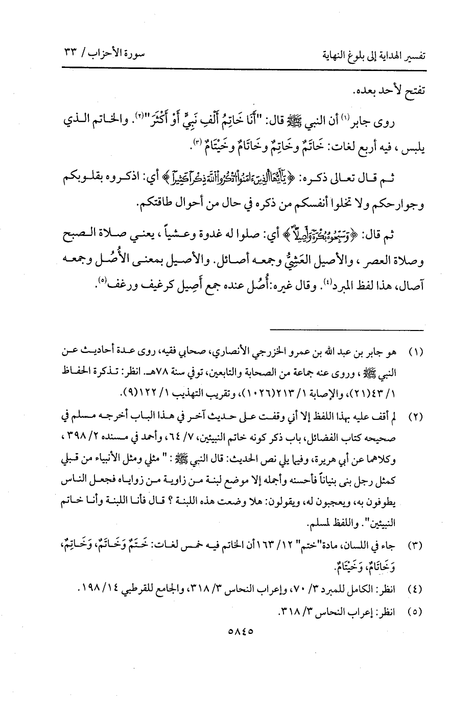 ثم قال: {وَسَبِّحُوهُ بُكْرَةً وَأَصِيلاً} أي: صلوا له غدوة وعشياً، يعني صلاة الصبح وصلاة العصر، والأصيل العَشِيُّ وجمعه أصائل. والأصيل بمعنى الأُصُل وجمعه آصال، هذا لفظ المبرد. وقال غيره: أُصُل عنده جمع أَصِيل كرغيف ورغف.