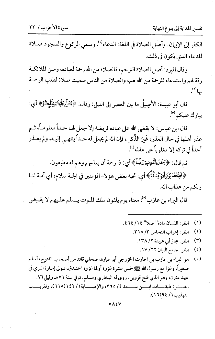 قال أبو عبيدة: الأصِيلُ ما بين العصر إلى الليل: وقال: {يُصَلِّي عَلَيْكُمْ وَمَلاَئِكَتُهُ} أي: يبارك عليكم.
