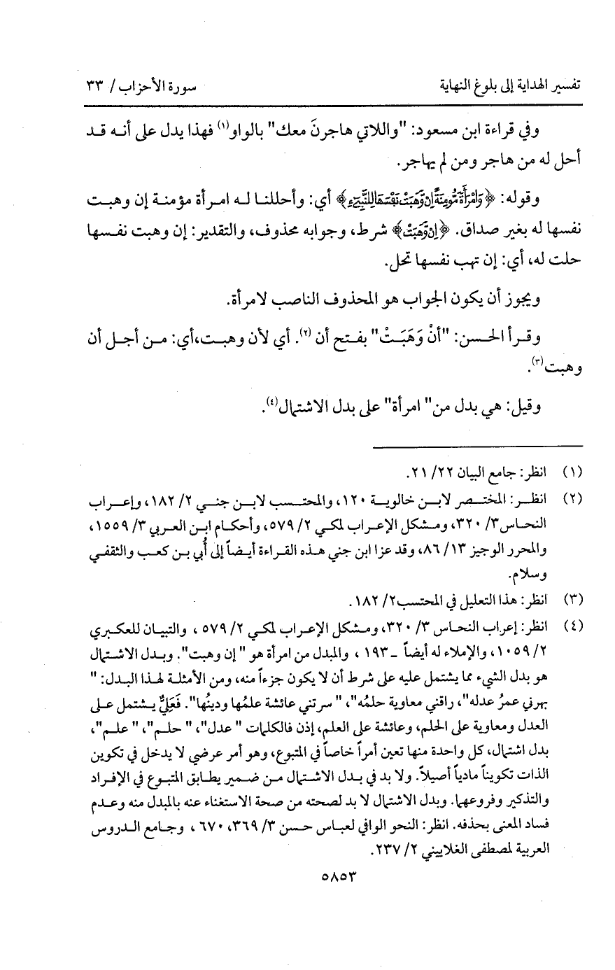 وفي قراءة ابن مسعود: " واللاتي هاجرنَ معك " بالواو فهذا يدل على أنه قد أحل له من هاجر ومن لم يهاجر.