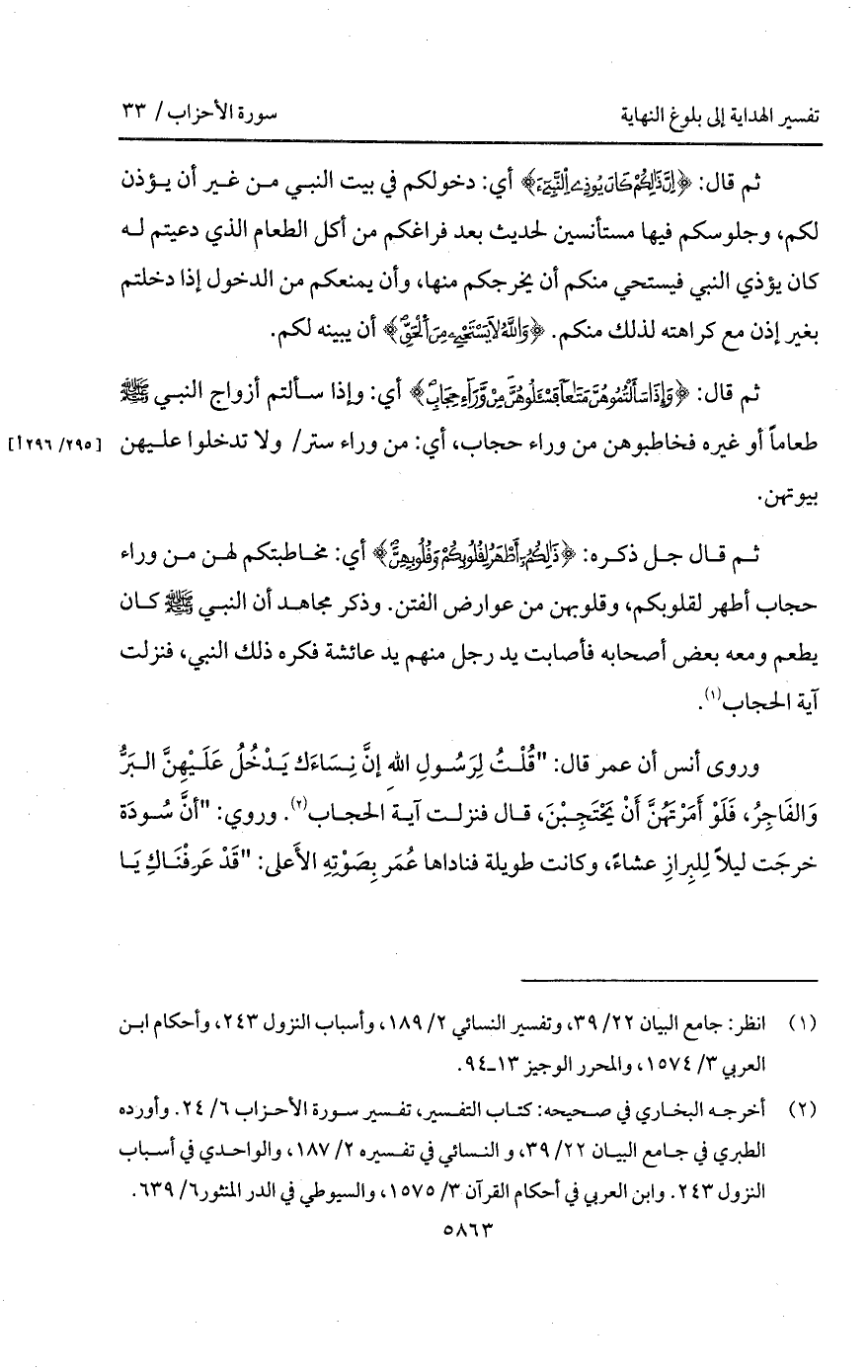 وذكر مجاهد أن النبي A كان يطعم ومعه بعض أصحابه فأصابت يد رجل منهم يد عائشة فكره ذلك النبي، فنزلت آية الحجاب.