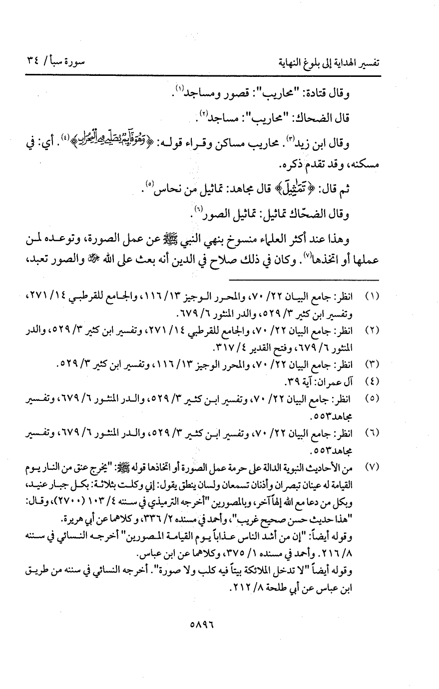 وقال ابن زيد. محاريب مساكن وقراء قوله: {وَهُوَ قَائِمٌ يُصَلِّي فِي المحراب} [آل عمران: 39]. أي: في مسكنه، وقد تقدم ذكره.